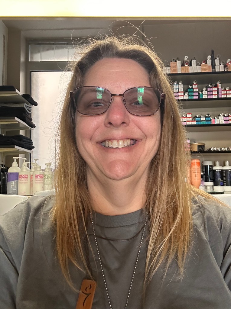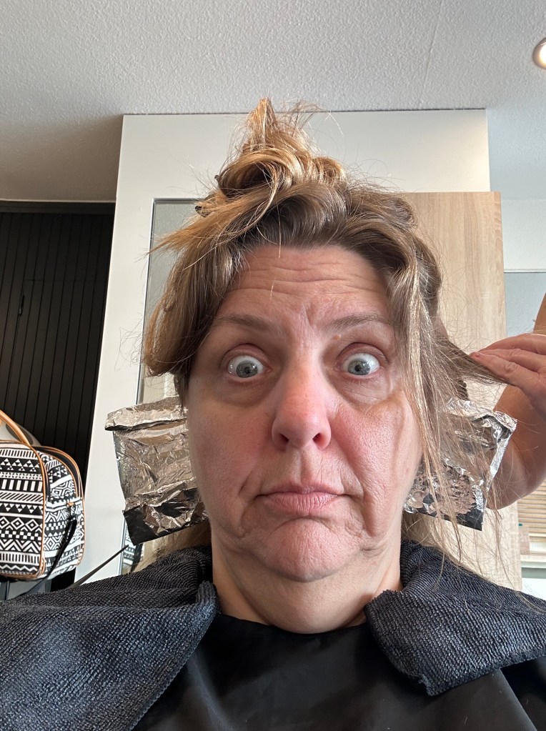 I decided I’d had enough of the stringy ends of my hair. I visited a salon called L’instant Chic Coiffure Feminin-Masculin. The Artist that agreed to my transformation was named Aurelie. She was a bit younger than me and had been doing hair for 30 years!