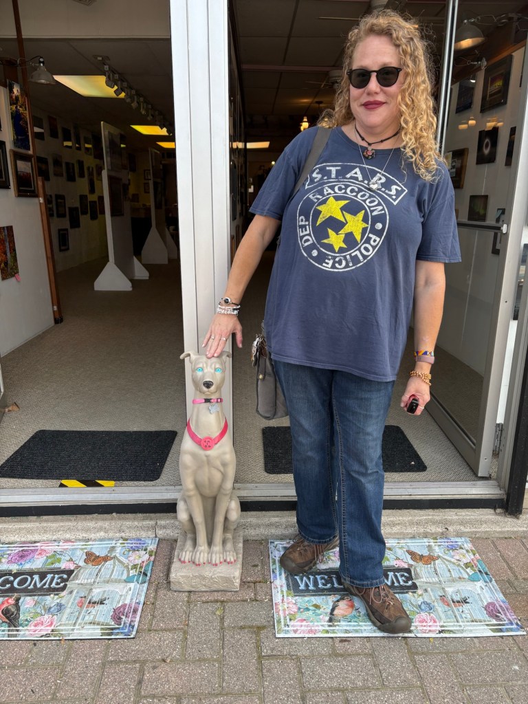 This naughty lady, bedecked in a pride collar and a satisfied expression had to be wrangled back into her home after taking advantage of friendly greetings and an open door. Ruby is a good girl.