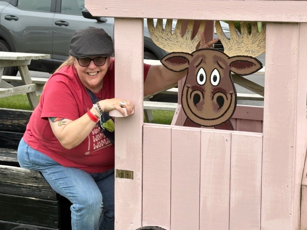 Long before Jen knew me I once spent a week at a school camp where breaking table rules made you have to kiss the moose. 🫎 I was not puckering up.Bunny ears on the moose because I’m 12.The whole trainPetting a weird dogWeirdly petting a dog