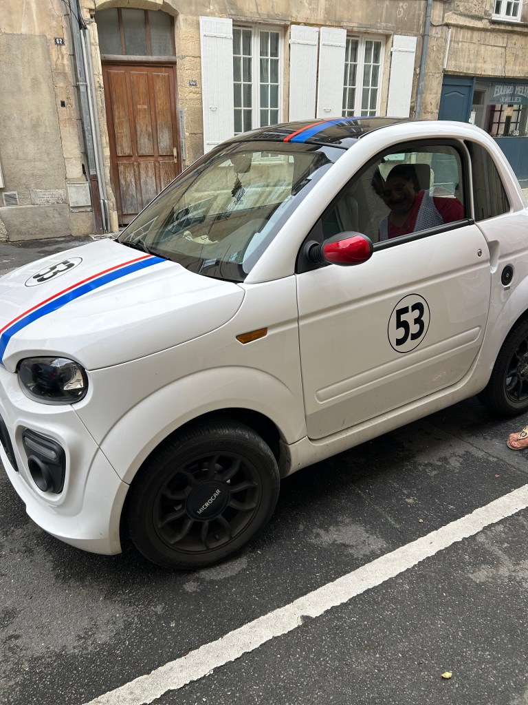 The little car was painted like the Love Bug Herbie. It was cute and the woman who owned it was an older woman with dyed dark hair. When I put up my camera, she smiled radiantly and laughed.