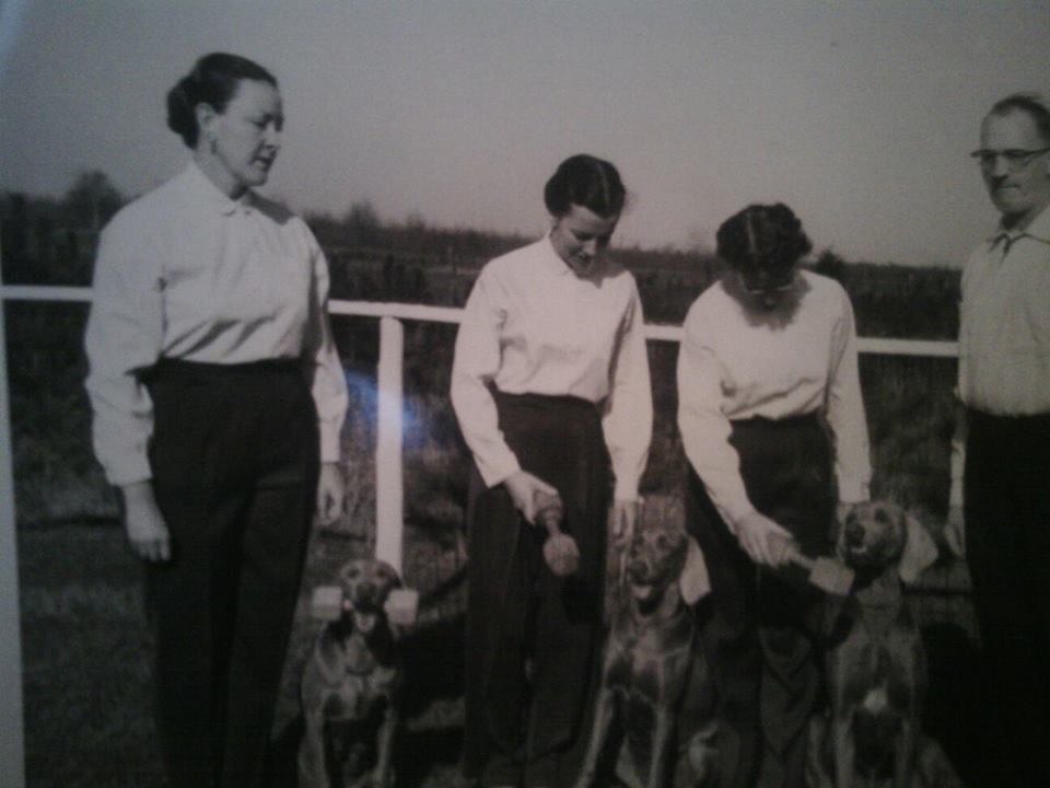 My Grandmother, Beverly Jordan, is the one on the far left. She bred, trained and showed dogs for many years.