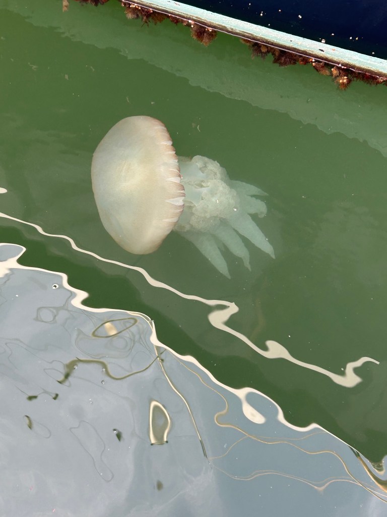 As I was getting ready to meet the Bolt car, I happened to look down into the water by my boat. HOLY TOLEDO! A mother farting jellyfish! My friend Bonk! said it was a box jellyfish. I’d never seen one in the water like that before so I was intrigued with the way they move in such a fluid like motion.